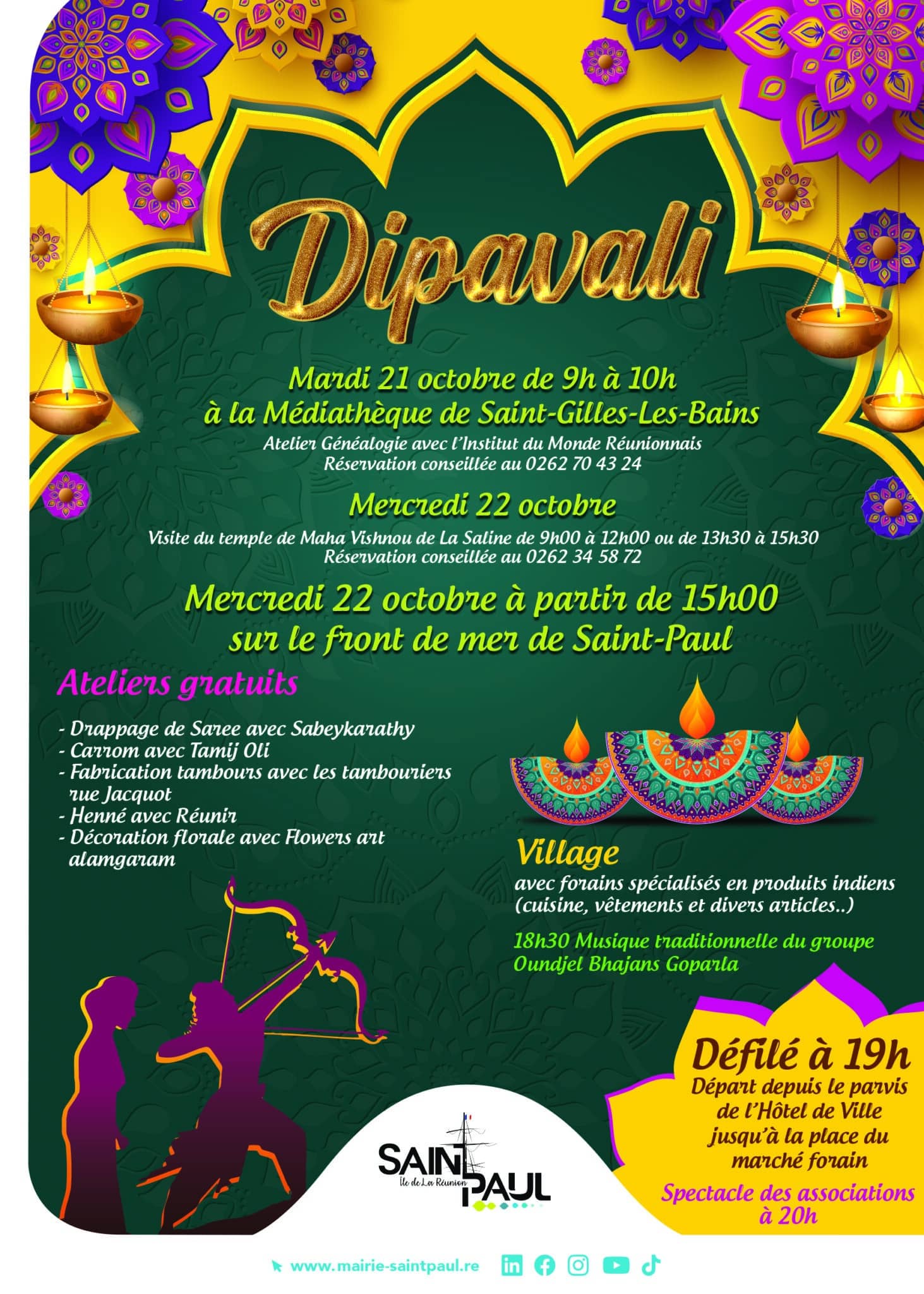 Le Dipavali 2025 à Saint-Paul promet une soirée exceptionnelle, entre traditions ancestrales et festivités modernes. En participant à cet événement, vous vivrez un moment unique de communion et de découverte, où la lumière relie les cultures et les générations.