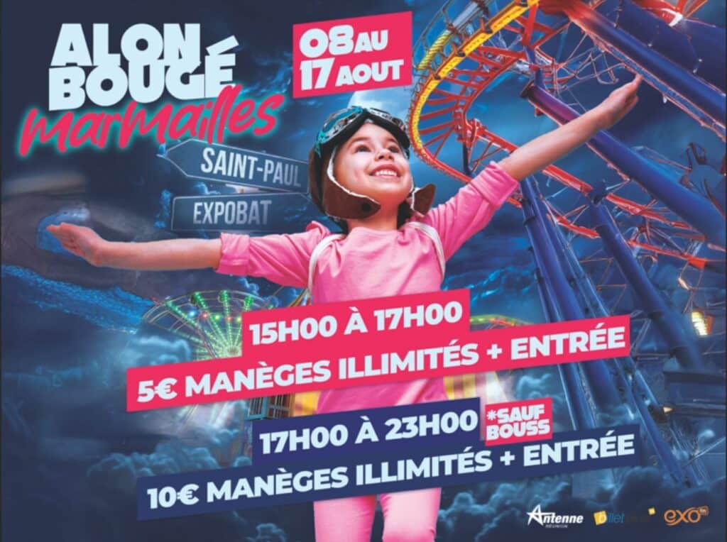 Vous êtes en vacances ? Les enfants tournent en rond à la maison ? Vous cherchez une sortie pas chère à La Réunion ? Ne cherchez plus. Allons Bougé Marmaille à EXPOBAT Saint-Paul, c’est l’événement incontournable d’août, pensé pour vous faire vibrer, rire, crier (dans les loopings) et danser jusqu’au bout de la nuit. Préparez les baskets, les chapeaux, et la crème solaire. Rendez-vous au parc EXPOBAT du 8 au 17 août !