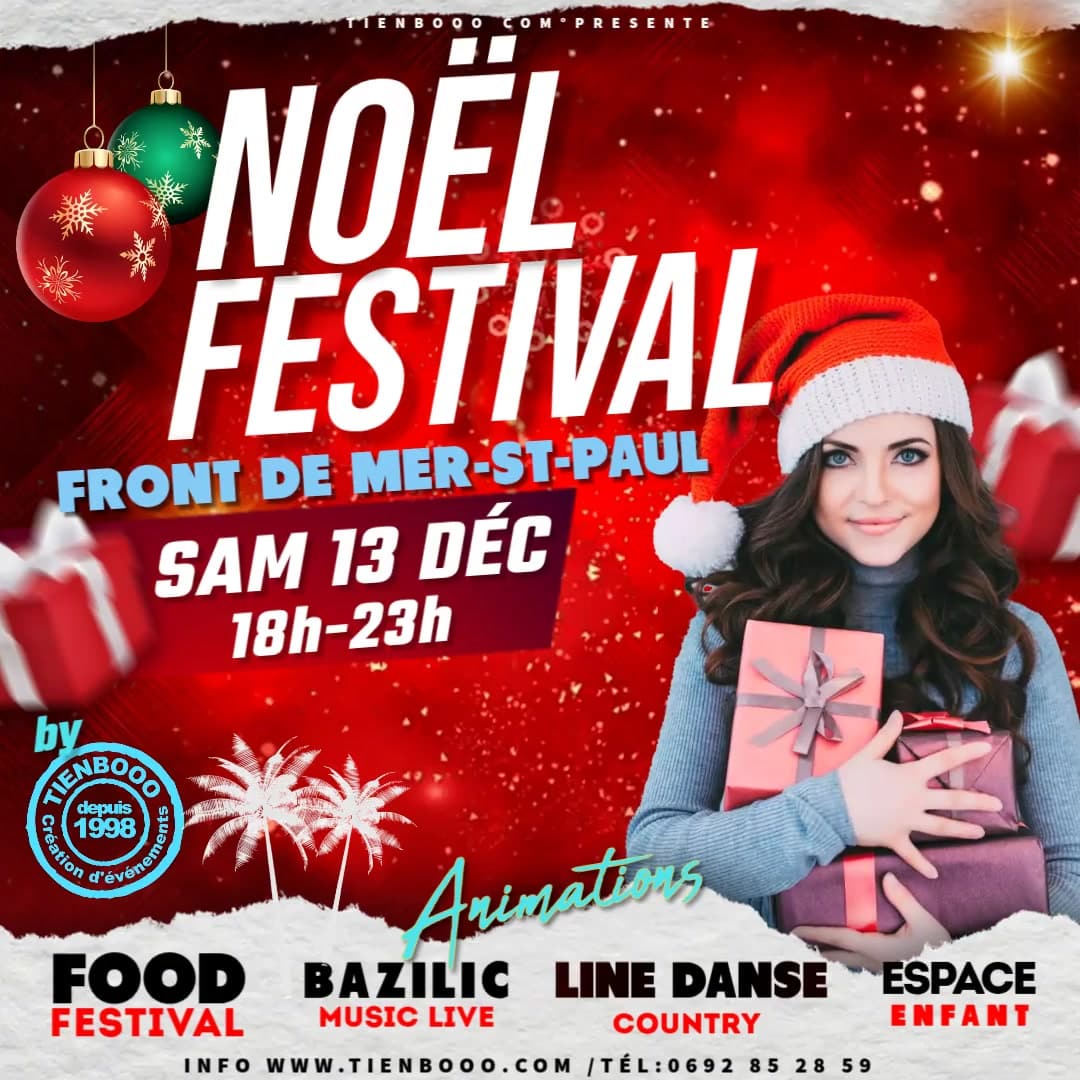 Ce Food Festival & Marché de Noël est l’occasion rêvée de cocher plusieurs cases en une journée : manger un bon plat, acheter ses cadeaux, prévoir sa déco, regarder un spectacle, sortir en famille, prendre un bol d’air en bord de mer… L’ambiance conviviale du front de mer de Saint-Paul donne à l’événement un charme particulier, à cheval entre la détente du week-end et la magie de Noël qui approche.
