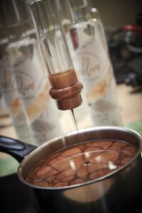 Ils optent pour une distillation au cœur même du fruit : pas de sucre ajouté, pas d’arômes artificiels, juste le « cœur de chauffe », la partie la plus pure et la plus aromatique issue de la distillation. Et ils ne s’arrêtent pas là : fermentation spontanée, alambic à clavier numérique, fruits issus de vergers bio ou en agriculture raisonnée… Un esprit novateur au service du goût.