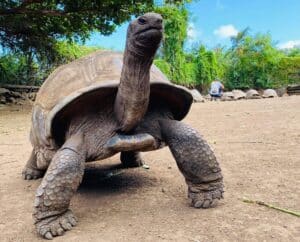 Le parcours est en visite libre avec un accès à l'enclos des Tortues Géantes des Seychelles où, en compagnie d'un soigneur, vous pourrez les toucher, les nourrir et prendre des photos avec elles ; de 09h00 à 12h00 & de 13h15 à 16h45. (Attention ! En cas d'intempéries, cet enclos peut être amené à fermer pour des raisons de sécurité).
