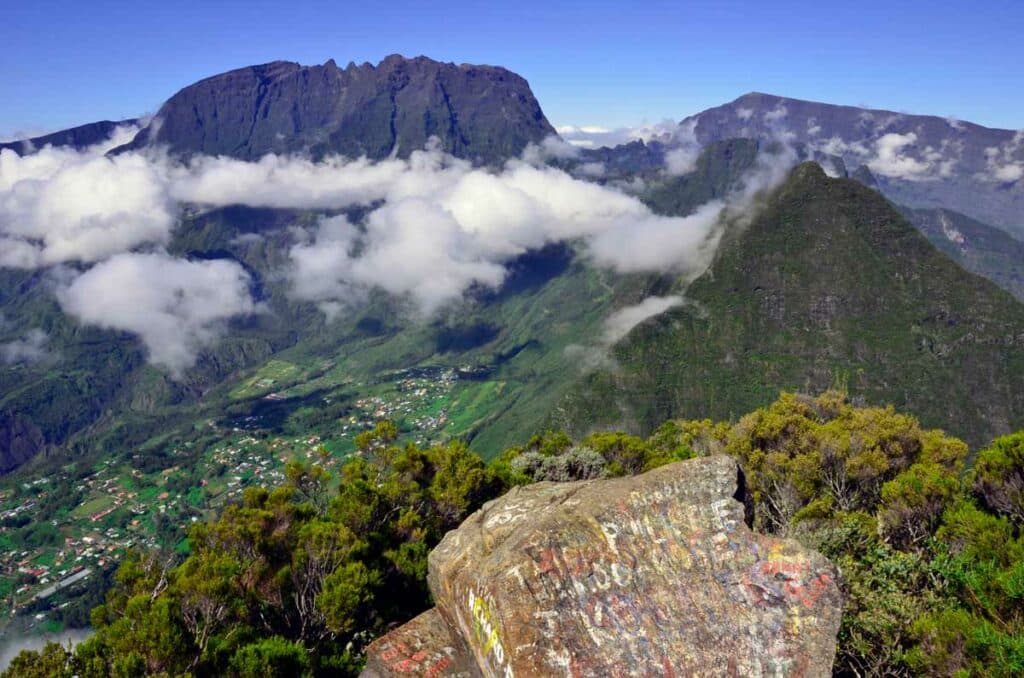 Au sommet, la vue plongeante sur le cirque de Salazie et sur les sommets avoisinants est spectaculaire.