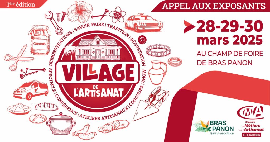 📅 Rendez-vous du 28 au 30 mars 2025 au Champ de Foire de Bras-Panon pour célébrer ensemble l’artisanat réunionnais !